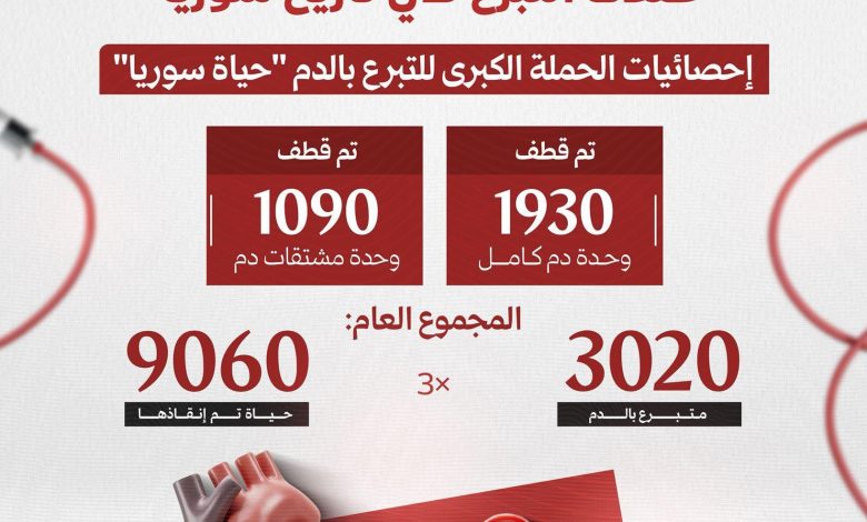إحصائيات الحملة الكبرى للتبرّع بالدّم “حياة سوريا ” …..