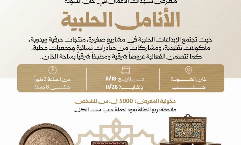 حلب تحتفي بريادة المرأة الاقتصاديّة في معرض ” الأنامل الحلبيّة ” بخان الشّونة التّاريخي