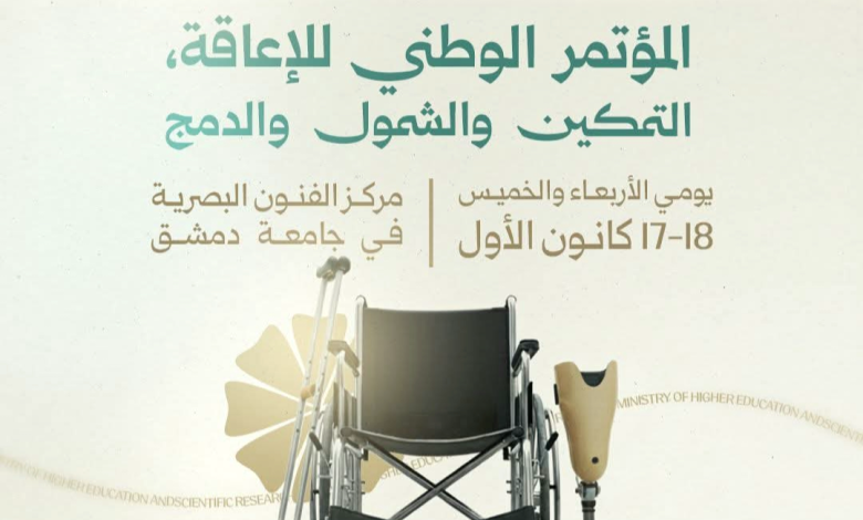 برعاية الأمانة العامّة لرئاسة الجّمهوريّة ، تُقيم وزارة التّعليم العالي والبحث العلمي المؤتمر الوطني للإعاقة : التّمكين ، الشّمول ، والدّمج .