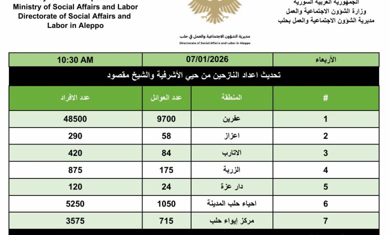 و إليكم آخر تحديث لمراكز الإيواء الإنساني ضمن مدينة حلب :