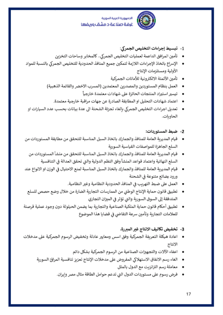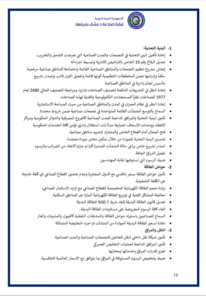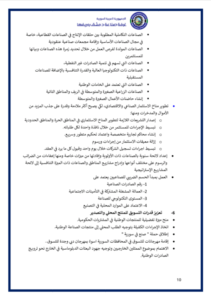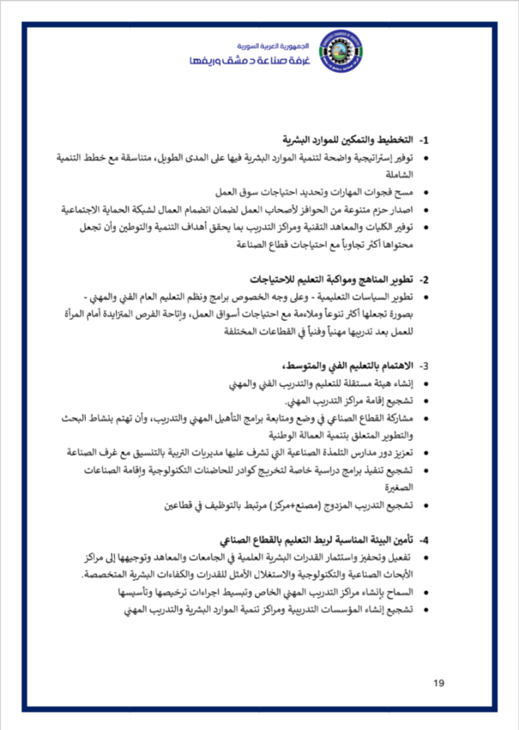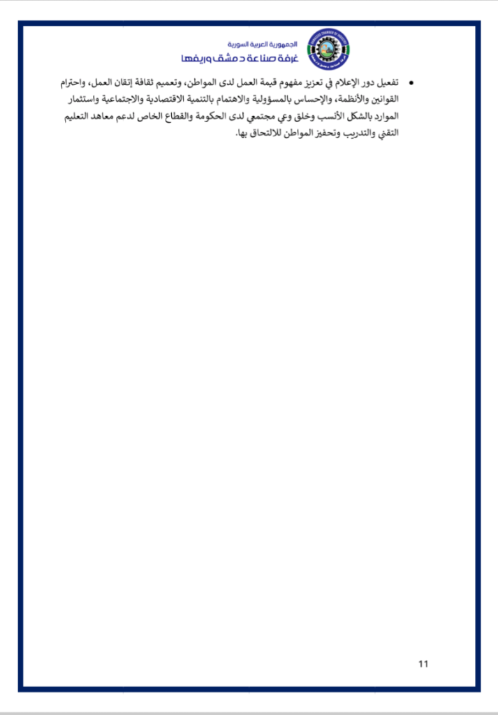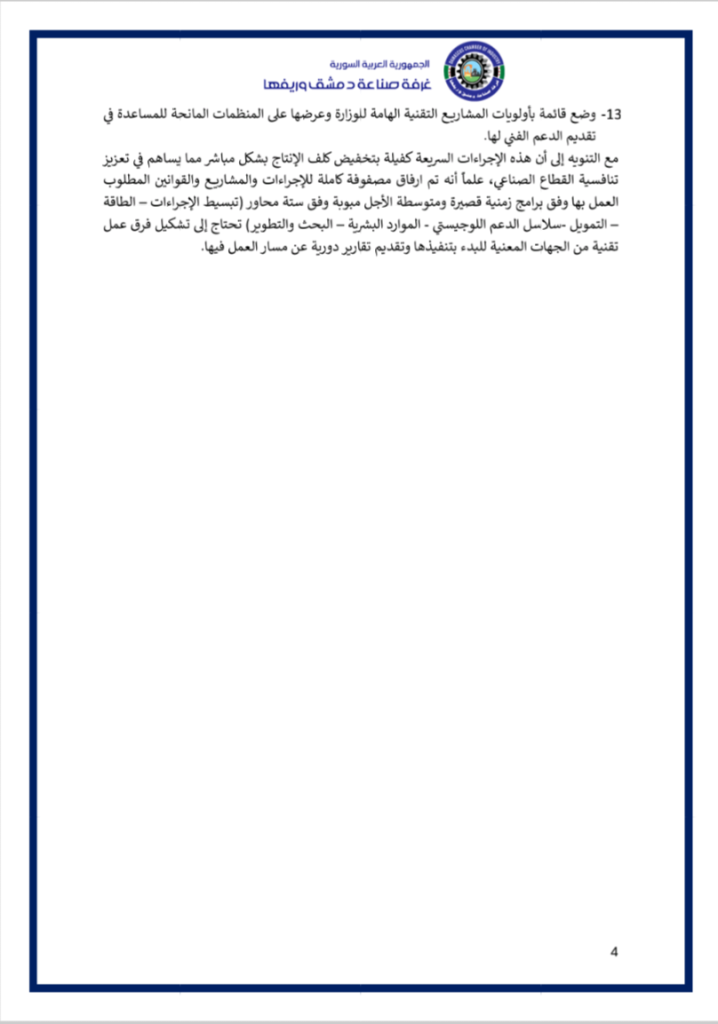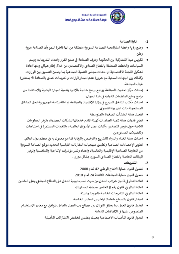 نضع بين أيديكم فيديو عن ملتقى ” مختبر حلول الصّناعة الوطنيّة ” الذي أقامته غرفة صناعة دمشق وريفها في السّادس من كانون الثّاني 2026 بحضور معالي وزير الاقتصاد و الصّناعة و وزير الاتّصالات و التّقانة و وزير الماليّة و حاكم مصرف سورية المركزي و محافظ مدينة دمشق و عدد من المسؤولين و الذي خرج بوثيقة استراتيجيّة و مصفوفة تنفيذيّة للنهوض بصناعتنا الوطنيّة و إعادة ألقّها ..