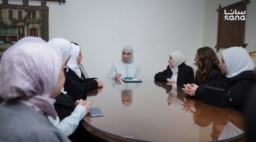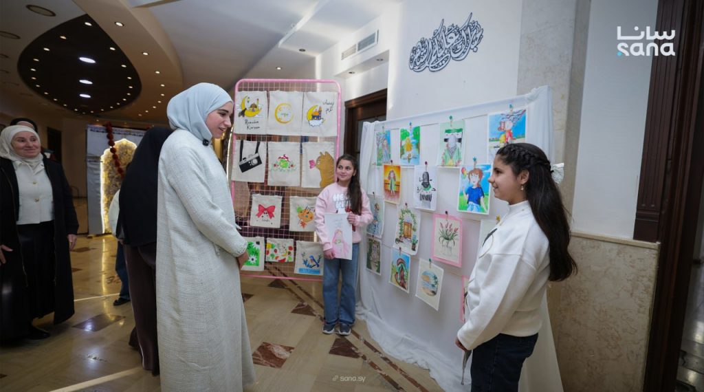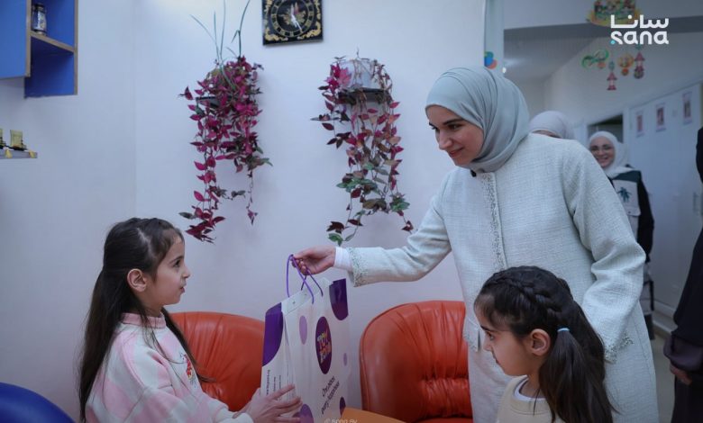 عقيلة فخامة الرّئيس أحمد الشّرع السّيّدة لطيفة الدروبي تزور ميتم الجّمعيّة الخيريّة الإسلاميّة في حمص ، وتطّلع على أقسام الدار وبرامجها التّعليميّة والتّأهيليّة المتنوّعة ، بِمَ في ذلك معرض الرّسوم وقسم الرّوبوت والمخبر العلمي .