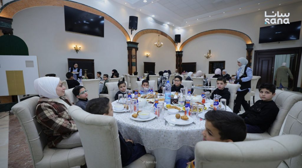وشاركت السّيّدة لطيفة الدروبي الأطفال المقيمين في الدار ، إلى جانب عدد من أبناء الشّهداء ، مائدة إفطار رمضان ، واستمعت إلى فقرات قدّمها الأطفال تضمّنت تلاوة من القرآن الكريم ومشاركات أدبيّة .