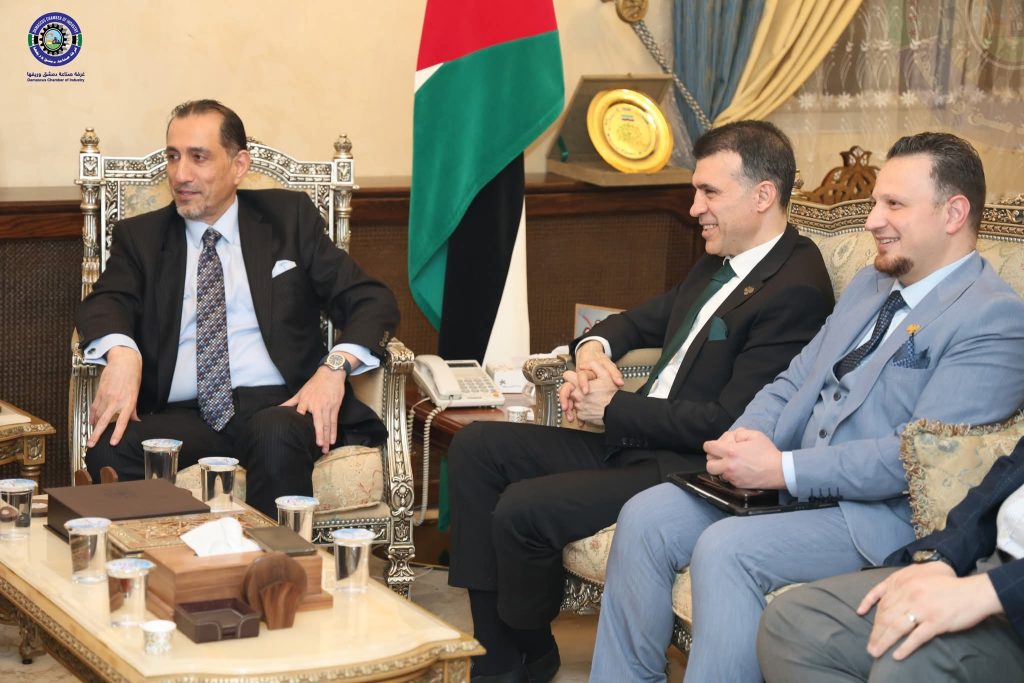 في خطوةٍ تعكس عمق الرّوابط التّاريخيّة وتطلّعات التّعاون الاقتصادي المتجدّد ، تستعد العاصمة الأردنيّة عمّان لفتح أبوابها أمام الصناعة السّوريّة في تظاهرة تجاريّة كبرى ، لترسم ملامح مرحلة جديدة من التكامل الاقتصادي بين البلدين الشقيقين، في هذا الصّدد قام وفد من غرفة صناعة دمشق وريفها برئاسة المهندس محمد أيمن المولوي، يرافقه عدد من أعضاء مجلس الإدارة، بزيارة إلى مقرّ سفارة المملكة الأردنيّة الهاشميّة بدمشق ، حيث كان في استقبال الوفد سعادة السفير الدكتور سفيان سلمان القضاة، والمستشار الدكتور عمار الضمور نائب رئيس البعثة.