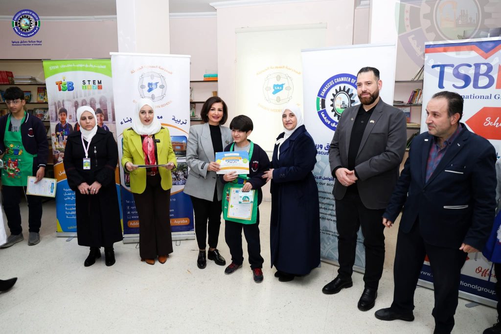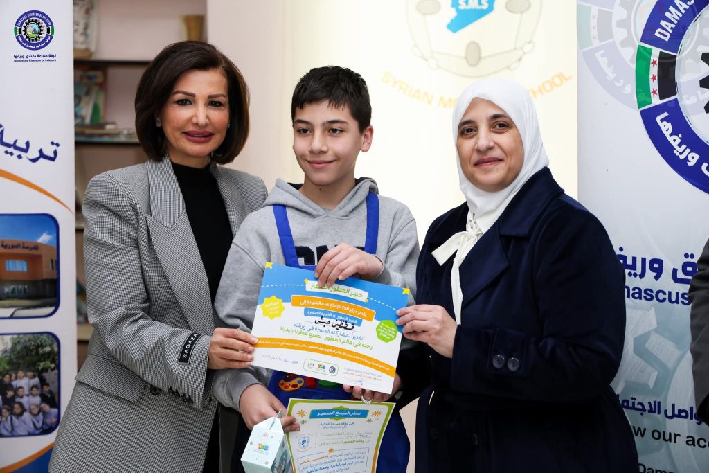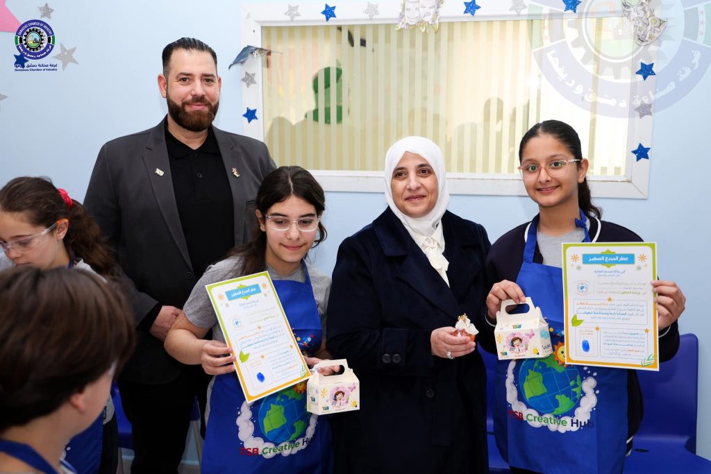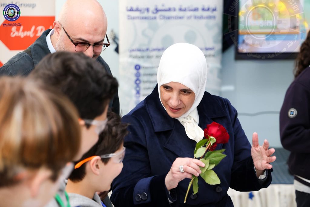 الأستاذة سوسن علوني مديرة المدرسة السورية الحديثة أعربت عن شكرها العميق لغرفة صناعة دمشق وريفها ومركز TSB للإبداع و شركة اللحظة الدمشقية، مؤكدة أن مثل هذه المبادرات تمنح الطلاب دفعة معنوية وعلمية هامة، وتخرج بهم من النمط التقليدي للتعليم إلى فضاءات التجربة والابتكار، مما يعزز لديهم ثقافة الإنتاج والانتماء للمهنة الوطنية.