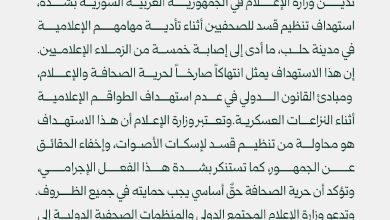 عكـس الاتّـجاه نيـوز _ محلّيّات أعلنت وزارة التّعليم العالي والبحث العلمي في الجّمهوريّـة العربيّـة السّـوريّـة ، اليوم الثلاثاء، عن تعليق…